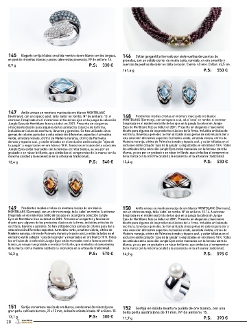 esta colección diferentes aspectos: turmalina verde, amatista violeta, citrino de esta colección diferentes aspectos: turmalina verde, amatista violeta, citrino de 157 Pendientes italianos en oro amarillo, diseño en cascada 158 Juego de pendientes criollas y sortija ‘bombé’ en montura
