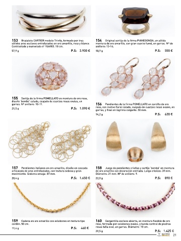 esta colección diferentes aspectos: turmalina verde, amatista violeta, citrino de esta colección diferentes aspectos: turmalina verde, amatista violeta, citrino de 157 Pendientes italianos en oro amarillo, diseño en cascada 158 Juego de pendientes criollas y sortija ‘bombé’ en montura