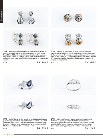 VS y color I, pureza SI) y 2 btes: 0.30 ct aprox. (características light yellow, pureza VS2, fluorescencia intensa y 2) color L, pureza