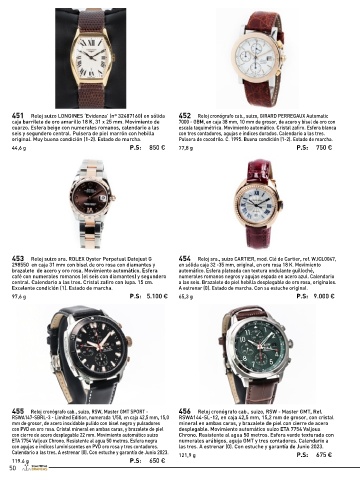 451 Reloj suizo LONGINES ‘Evidenza’ (nº 32487160) en sólida 452 Reloj cronógrafo cab., suizo, GIRARD PERREGAUX Automatic