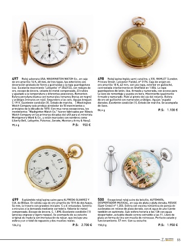 497 Reloj saboneta USA, WASHINGTON WATCH Co., en caja 498 Reloj lepine inglés semi-catalino, s XIX, HAMLET (London.