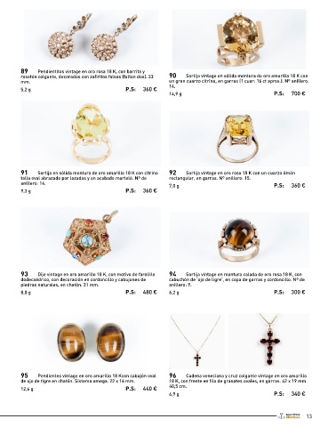 finos calibrados, alternadas con filas de blancos diamantitos 8/8, 91 Sortija en sólida montura de oro amarillo 18 K con citrino 92 Sortija vintage en oro rosa 18 K con un cuarzo limón