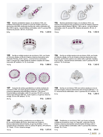 estimadas: color H, pureza, VS). Nº de anillero: 13. VVS). 16 x 10 mm. 12,4 g P.S: 1.075 € 7,7 g P.S: 590 €