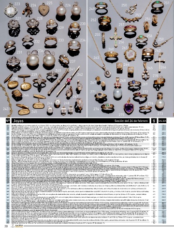 276 Anillito en oro amarillo 18 K, con flor central en oro blanco matizado con un diamantito talla brillante de 0.01 ct aprox. Nº de anillero: 15. 1,2 80 € 326 Pendientes largos con dos perlas cultivadas de 9 mm, unidas entre sí por una cadenita de oro amarillo 18 K . Presiones de silicona. 68 mm. 6,4 190 €