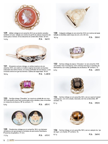129 Alfiler vintage en oro amarillo 18 K con un bonito camafeo 130 Colgante vintage en oro amarillo 18 K con motivo de buda
