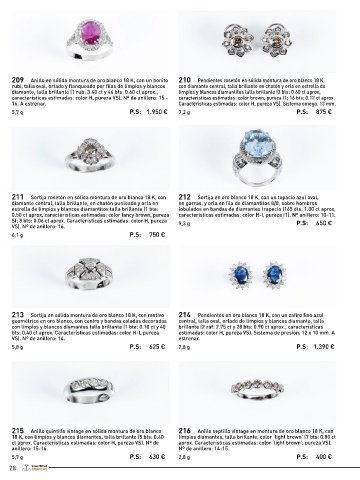 211 Sortija rosetón en sólida montura de oro blanco 18 K, con 212 Sortija en oro blanco 18 K, con un topacio azul oval, 219 Pendientes en oro blanco 18 K, con un blanco diamante, 220 Pendientes largos en oro blanco 18 K, formados por