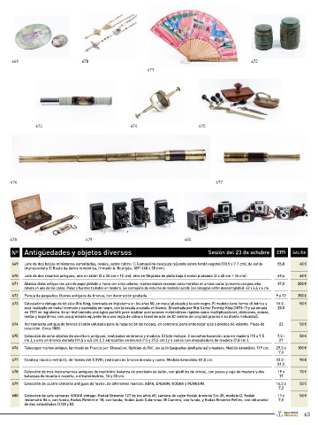 Nº Antigüedades y objetos diversos Sesión del 23 de octubre g SALIDA 675 Colección de ocho objetos de escritura antiguos, realizados en bronce y madera. El lote incluye: 2 secantes balancín; uno en madera (15 x 7,5 7,5 - 50 €