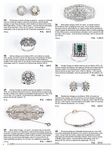 antigua, en garritas de ilusión, intercalados con diamantitos talla 34 Bello alfiler antiguo, estilo ‘art-decó’, en sólida montura 41 Pendientes vintage en sólida montura de oro rosa