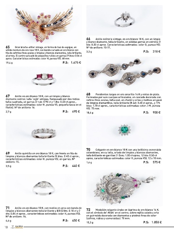 67 Anillo en oro blanco 18 K, con un limpio y blanco 68 Pendientes largos en oro amarillo 14 K y vistas de plata. 75 Broche vintage en sólida montura de oro amarillo 18 K, diseño características estimadas: color H, pureza VS). Nº anillero: 7-8.