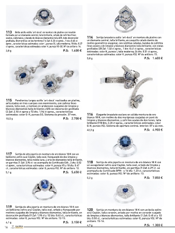 ct aprox., características estimadas: color H, pureza VS-SI). Nº de anillero: 14. finos azules y de limpios y blancos diamantes talla brillante, con vistas Nº de anillero: 14-15. estimadas: color G, pureza VS). Nº de anillero: 13-14.