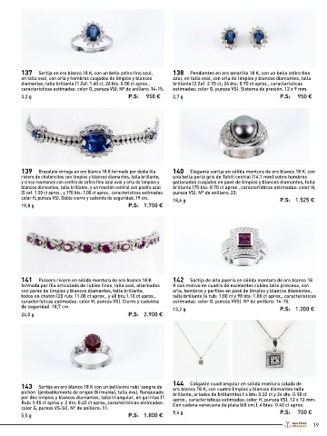 129 Anillo media alianza en oro blanco 18 K, con frente en 130 Pendientes en oro blanco 18 K, con forma de lazada, 137 Sortija en oro blanco 18 K, con un bello zafiro fino azul, 138 Pendientes en oro amarillo 18 K, con un bello zafiro fino