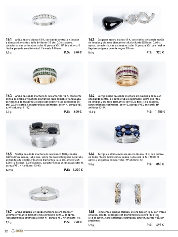 167 Anillo solitario en sólida montura de oro blanco y 168 Pendientes medias criollas, en oro bicolor 18 K, con frente 175 Anillo media alianza en oro blanco 18 K con frente en 176 Anillo en oro blanco 18 K, diseño ligeramente ‘bombé’, con