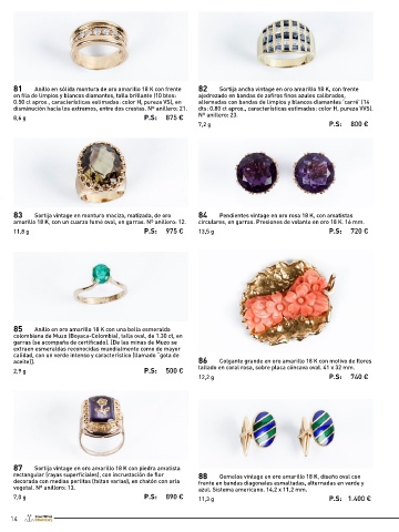 83 Sortija vintage en montura maciza, matizada, de oro 84 Pendientes vintage en oro rosa 18 K, con amatistas 91 Elegante brazalete ancho art-decó, al estilo de Cartier,