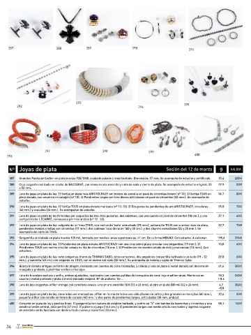 396 Bonito brazalete antiguo en forma de dragón, realizado con cuentas de coral trenzadas, y cabeza y cola en plata ó metal dorado con decoración 41,4 350 € 409 Lote de joyas en plata de ley: 1) pulsera con diferentes colgantitos (18 cm.), y 2) cinco pares de pendientes (dos medias criollas, dos largos con 39,0 50 €