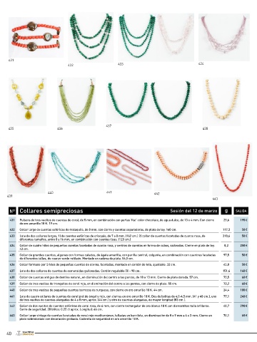433 Lote de dos collares largos, 1) de cuentas esféricas de crisopás, de 7 a 8 mm. (162 cm.) 2) collar de cuentas facetadas de cuarzo rosa, de 318,6 50 € Nº Collares semipreciosas Sesión del 12 de marzo g SALIDA
