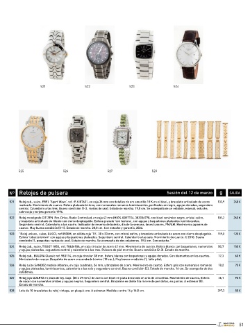 cm). Cristal zafiro domo antirreflejos. Estanco a 30 m. Movimiento L888.4 caja de acero pulido tipo ‘tanque’, 27 (33) x 22 mm con cristal zafiro. Nº Relojes de pulsera Sesión del 12 de marzo g SALIDA