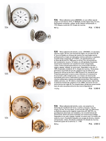 de marcha. 536 Reloj saboneta de bolsillo, suizo, con sonería a la