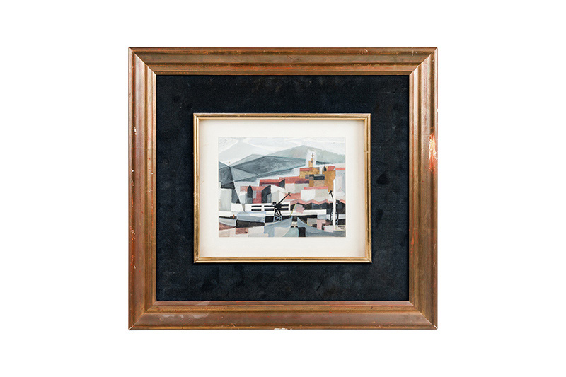 Gouache s/papel: 'Muelle de Uribitarte'. NICOLÁS MARTÍNEZ ORTIZ DE ZÁRATE. Firmado. Con marco de madera: 20,5 x 16 cm.