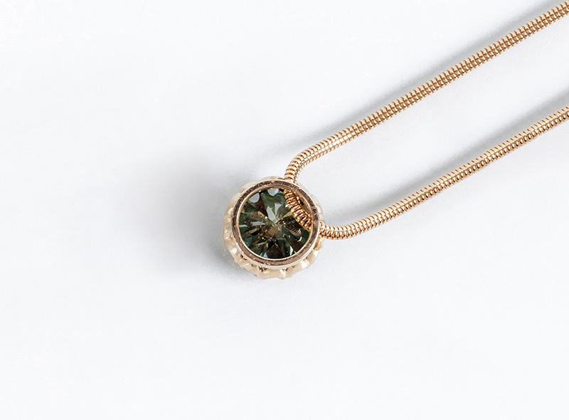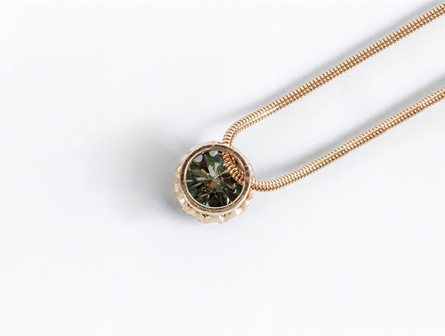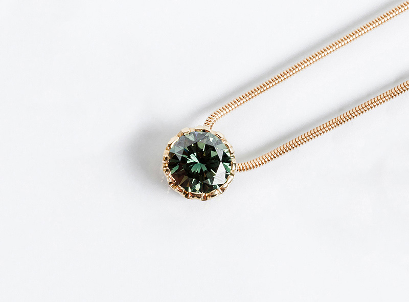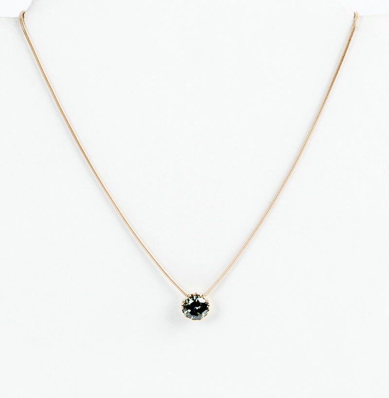 Cadena cordón 'tubo de gas', en oro amarillo 18 K, con un limpio diamante natural, talla brillante, color 'green-blue', en colgante (1 bte: 3.50 ct aprox. Características estimadas: color green-blue (treated), pureza VS, excelente talla, pulido y simetría, fluorescencia débil, azul). 44,5 cm.