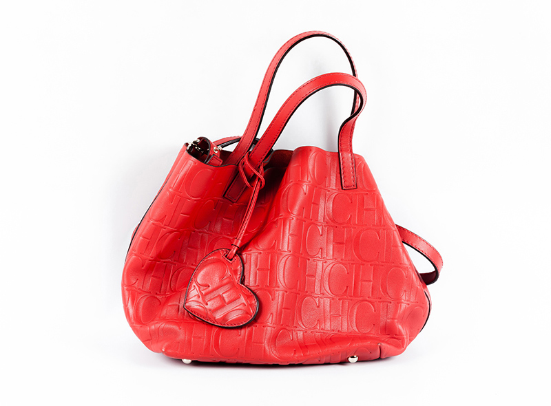Bolso de la firma CAROLINA HERRERA, moedelo Matryoshka S, elaborado en piel roja Baobab, con el Sello de las iniciales de Carolina perfilado. Su doble asa permite llevarlo como bolso de mano, hombro o codo. Con charm colgante de corazón. Se acompaña de bolsa guardapolvos. Impecable.