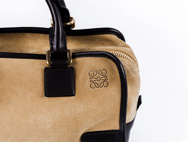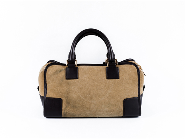 Bolso LOEWE, modelo 'Amazona' en ante color camel y piel marrón. Con correa extraíble y ajustable. Cierre cremallera. Bolsillo interior. Anagrama grabado. Excelente condición con pequeñas marcas de uso. Se acompaña de bolsa guardapolvos.