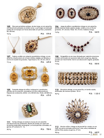 101 Sólida cadena larga de eslabones de calabrote, en oro 102 Pulsera esclava vintage de excelente factura, en sólida 109 Conjunto vintage de alfiler rectangular y pendientes 110 Brazalete vintage, en oro amarillo, en banda calada,