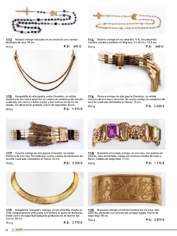 117 Pulsera vintage de alta joyería Chevalier, en sólida 118 Brazalete articulado vintage, en oro rosa, con piedras de 125 Brazalete vintage articulado, en montura calada de oro 126 Elegante brazalete clásico en malla trenzada de oro
