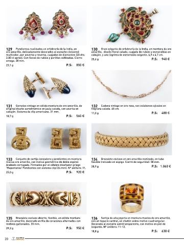 129 Pendientes realizados en orfebrería de la India, en 130 Gran colgante de orfebrería de la India, en montura de oro 44193352). Nº anillero: 14. 16,0 g P.S: 675 €