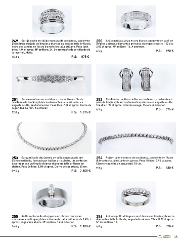 243 Pendientes en rosetón de oro blanco con centro de bonito 244 Pendientes largos en oro blanco y limpios y blancos 251 Pulsera esclava en oro blanco, con motivo en fila de 252 Pendientes medias criollas en oro blanco, con frente en