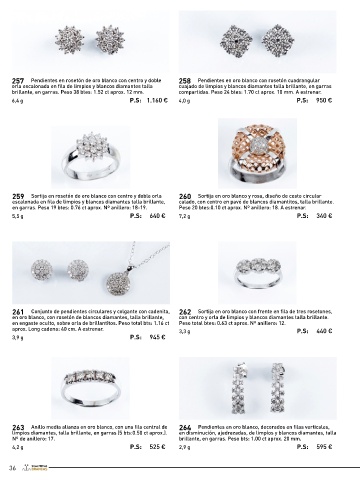 257 Pendientes en rosetón de oro blanco con centro y doble 258 Pendientes en oro blanco con rosetón cuadrangular 265 Pendientes criollas ovales en oro blanco, con frente en 266 Grandes pendientes criollas en oro blanco, con frente
