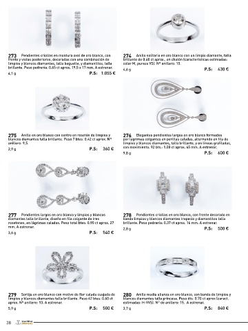 273 Pendientes criollas en montura oval de oro blanco, con 274 Anillo solitario en oro blanco con un limpio diamante, talla