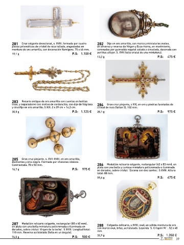 aprox. Nº anillero: 13. A estrenar. estimadas: H-VVS). Nº de anillero: 15. A estrenar. 287 Medallón relicario colgante, rectangular (80 x 60 mm), 288 Colgante-relicario, s XVIII, oval, en sólida montura de oro