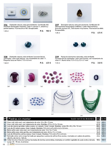 338 Diamante natural, talla brillante (características 339 Pareja de diamantes naturales, talla brillante