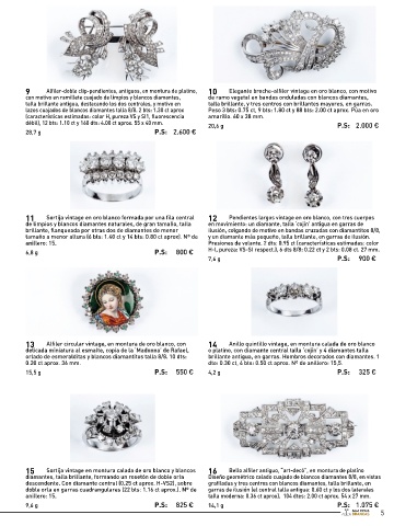 16,3 g P.S: 800 € características estimadas: color J, pureza SI; 8 bts: 0.80 ct y 84 dts P.S: 550 € P.S: 325 €