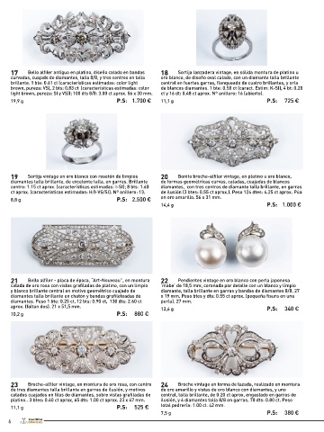 19 Sortija vintage en oro blanco con rosetón de limpios 20 Bonito broche-alfiler vintage, en platino u oro blanco, 27 Bonitos pendientes vintage en oro blanco, diseño de doble 28 Broche vintage en oro blanco, en rosetón calado con