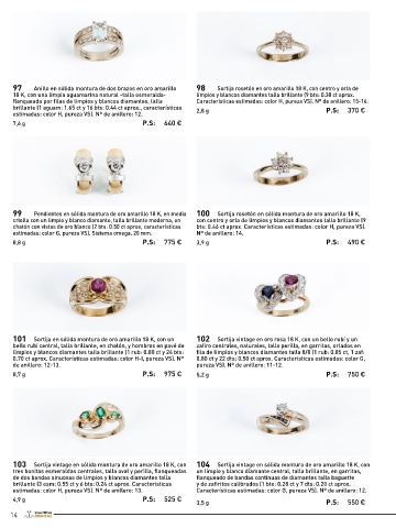 estimadas: color H, pureza VS). Nº de anillero: 12. 2,8 g características estimadas: color G-H, pureza VS). Nº anillero: 14 6,9 g P.S: 510 €