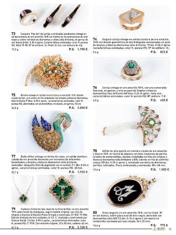70 Colgante en oro blanco 18 K con una bellísima esmeralda 78 Alfiler de alta joyería en montura calada de oro amarillo
