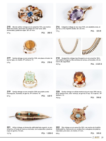 racimo cuajado de perlitas cultivadas, en movimiento. Presiones 14-15. 219 Sortija vintage en oro amarillo 18 K con piedra verde 220 Sortija vintage en sólida montura de oro rosa 18 K con un