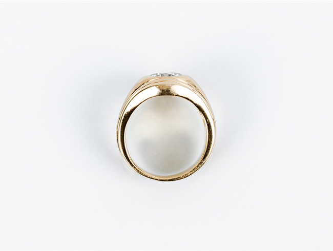 Anillo solitario en sólida montura gallonada de oro amarillo 18 K, con un limpio y blanco diamante natural, talla brillante moderna, de 1.40 ct aprox. (características estimadas: color H, pureza VVS, Muy buena talla, pulido y simetría. No fluor.), en chatón. Nº anillero: 9-10.
