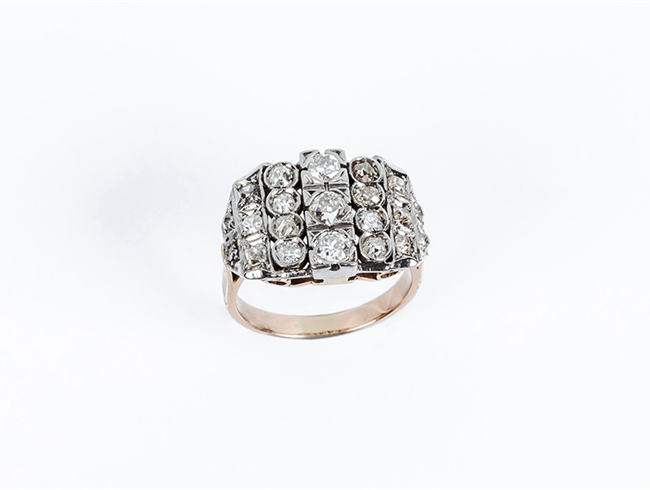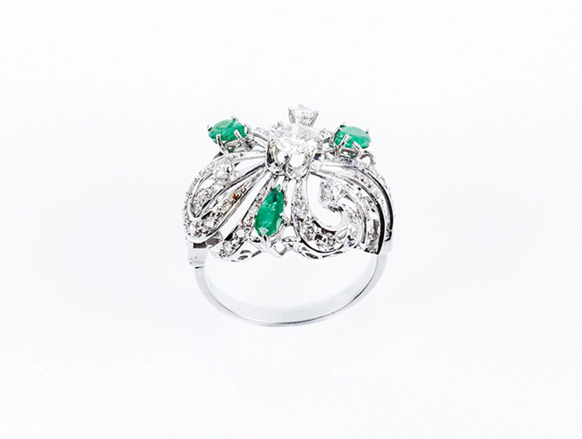 Sortija vintage en oro blanco, diseño "bombé", calado, ...