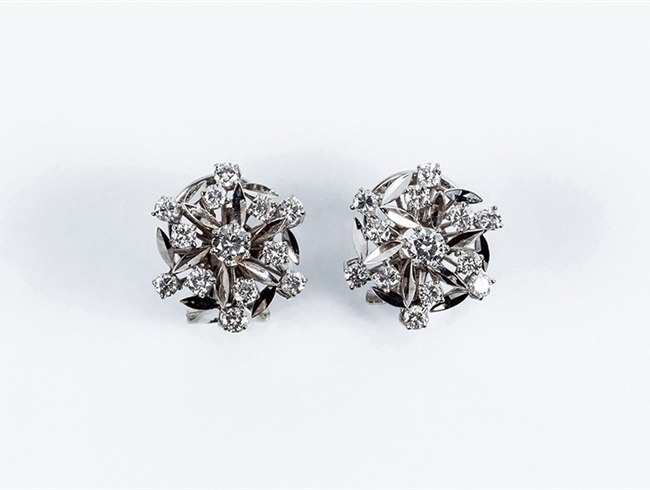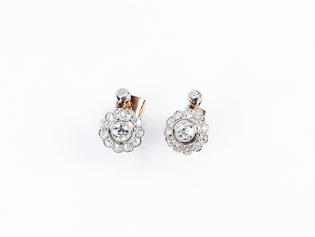 Pendientes vintage en oro blanco, formando un rosetón d...