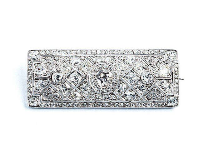 Espléndido broche antiguo, 'art-decó', en montura recta...