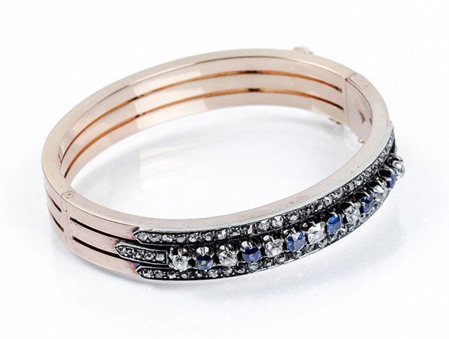 Brazalete esclavo antiguo, en sólida montura de oro ros...