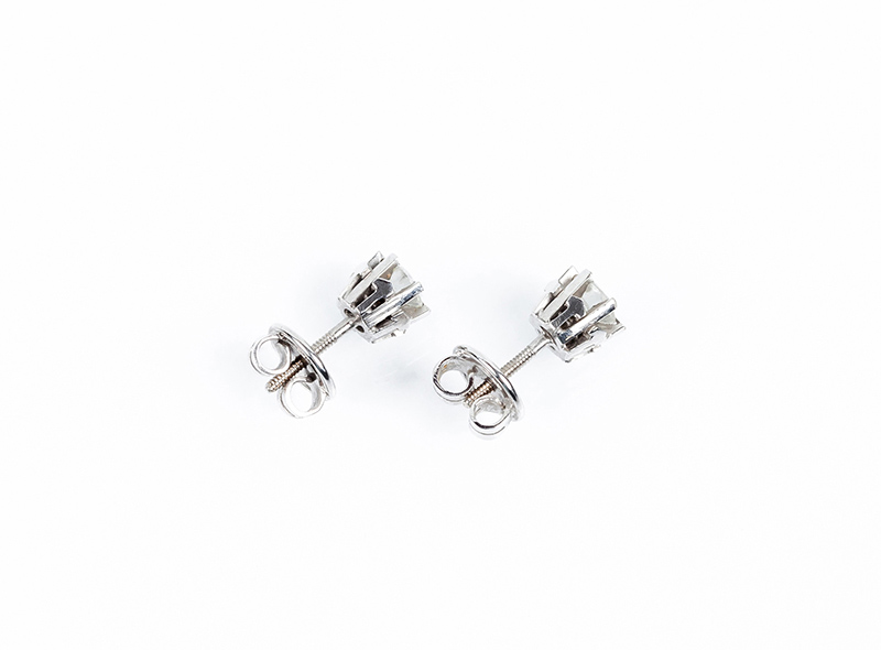 Pendientes solitarios en oro blanco 18 K, con limpios y blancos diamantes, talla brillante moderna, en sólidas garras de ilusión (2 bts: 1.00 ct aprox, características estimadas: color G, pureza VVS). Sistema de presión con rosca.