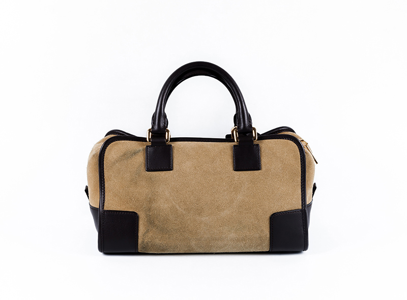 Bolso LOEWE, modelo 'Amazona' en ante color camel y piel marrón. Con correa extraíble y ajustable. Cierre cremallera. Bolsillo interior. Anagrama grabado. Excelente condición con pequeñas marcas de uso. Se acompaña de bolsa guardapolvos.